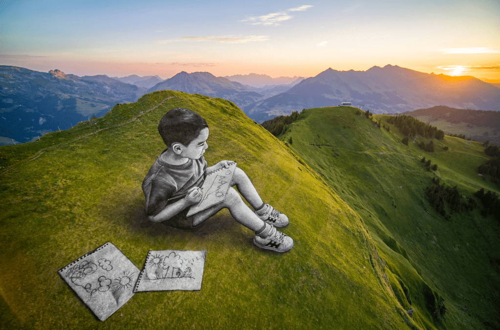 As a skater, you learn to look at the world in a different way. Everything becomes skate-able, and the world is your skate park. Large-scale artist Saype seems to have the exact same idea, though he sees the world as his canvas, and through seeing the world around him in this unique light he then brings his amazing art to life, with a side-helping of hope and the human condition. And don’t worry, his artworks are created with a 100% bio-degradable, eco-responsible paint and so they won’t harm the environment they’re sitting on top of. Pretty awesome right? You can find out more about Saype, his projects and see more of his artwork on his website. Share and enjoy!