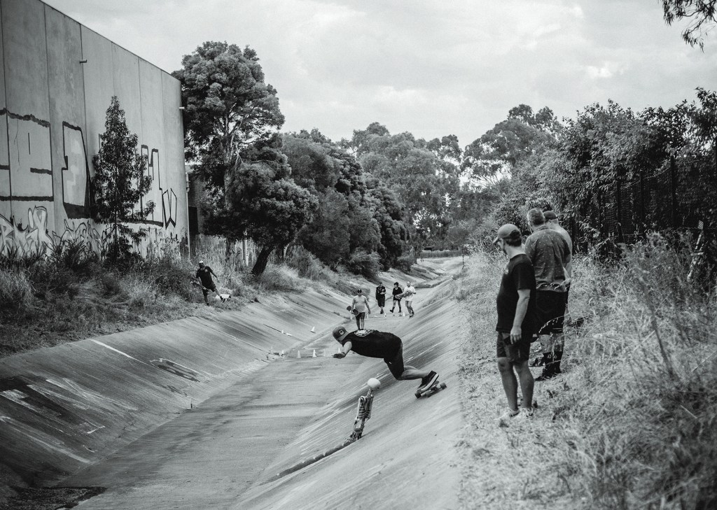 Springy ditch is part of a drainage system connected to ‘Blood Bath’ in Noble Park, where many of the old locals grew up skating. In Glen Waverley, we had much the same stuff happening, but were clueless about what was happening elsewhere. The thing with “ditch skating” is that it’s the essence of all modern skating. In 1975, the Dogtown guys were skating Californian drainage ditches and school banks. They were already famous before taking the next step to backyard pools and pipelines. Vertical ramps and skateparks followed soon after, and banks form the basis of every modern skatepark design.