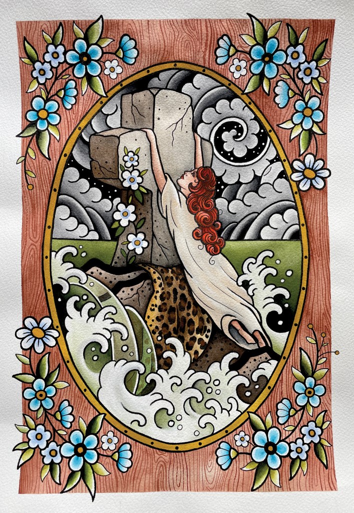 Tattooing and painting can’t really be compared in many ways at all. A painting is something that’s (hopefully) for me, and a tattoo is a service I provide to you. Painting can be undone, tattooing cannot. A tattoo is painful, uncomfortable, loud and abrasive. A painting for me is soft and gentle, smooth and relaxing. I love them both equally however, and I couldn’t choose one over the other.